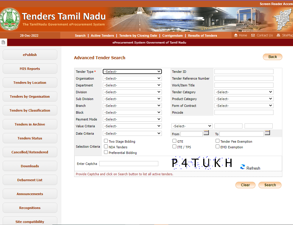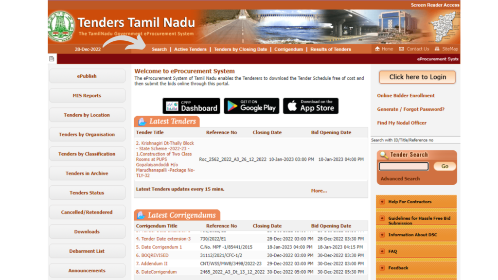 Now the Procurement Portal of Tamil Nadu is opened. Click on the search option given at the top of the site.