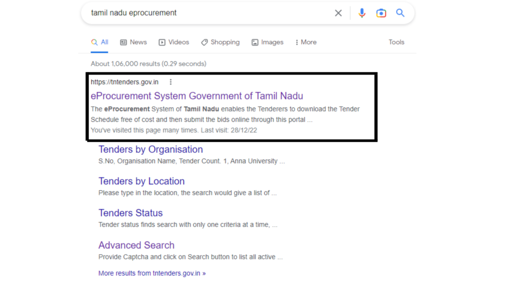 Now select the first link which is shown as Tamil Nadu.gov.in.