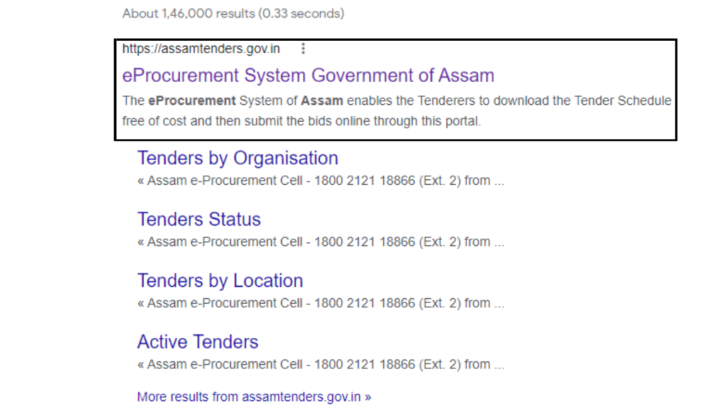 - Now select the first link which is shown as Assam tenders.gov.in.