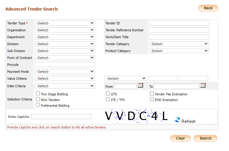 - Here you can see the advanced tender search option. Now you will be able to apply different filters as per your needs.