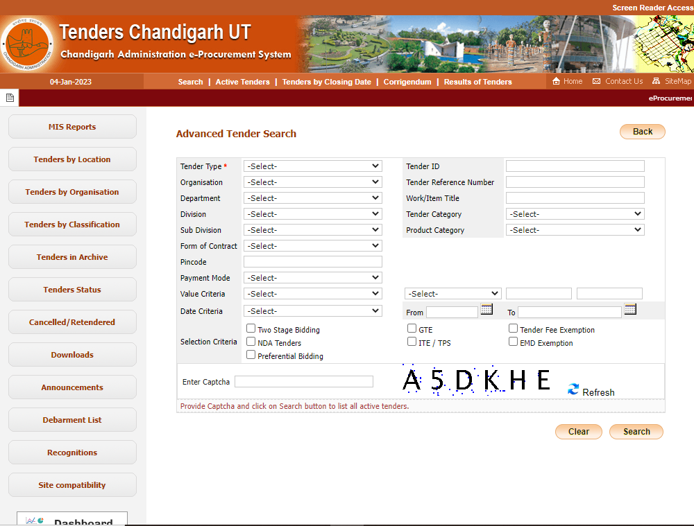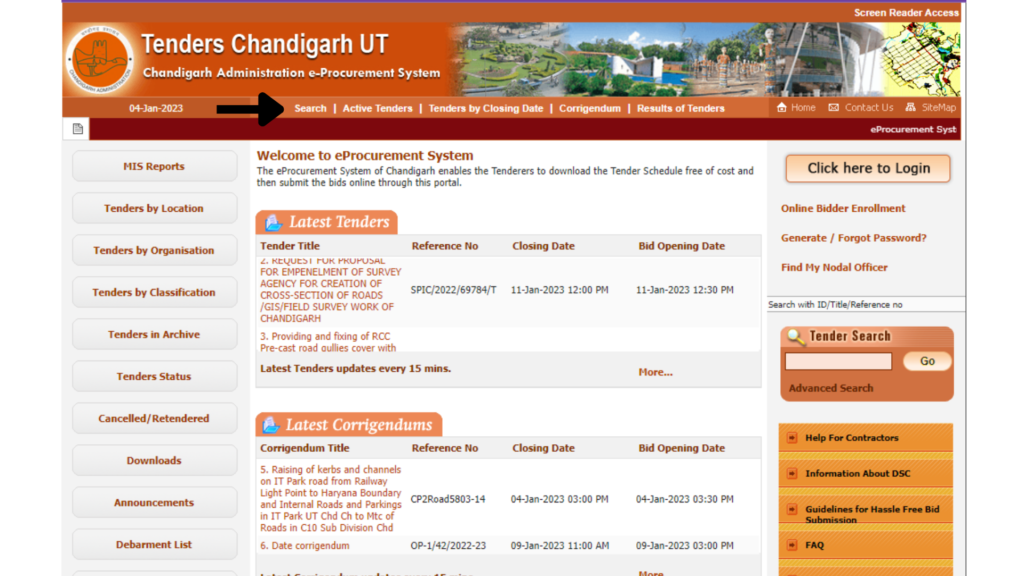 Now the Procurement Portal of chandigarh is opened. Click on the search option given at the top of the site.