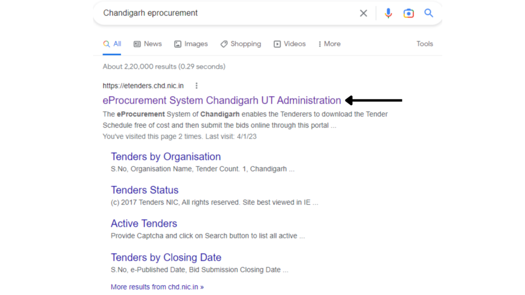Now select the first link which is shown as chandigarh.gov.in.