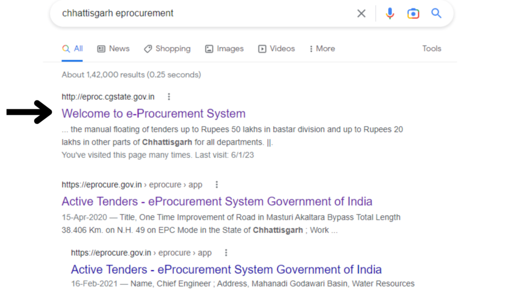 Now select the first link which is shown as Chhattisgarh.gov.in.