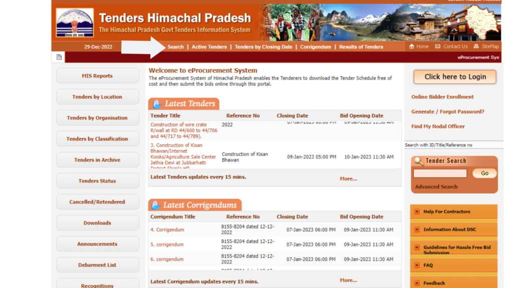 Now the Procurement Portal of Himachal Pradesh is opened. Click on the search option given at the top of the site.