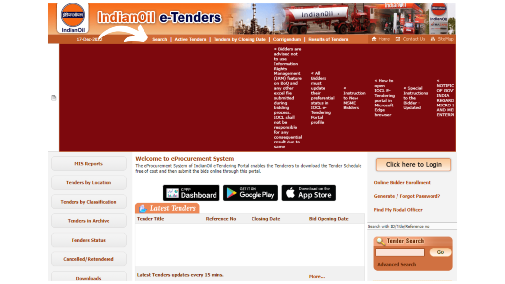 How to search Iocl Tenders Online