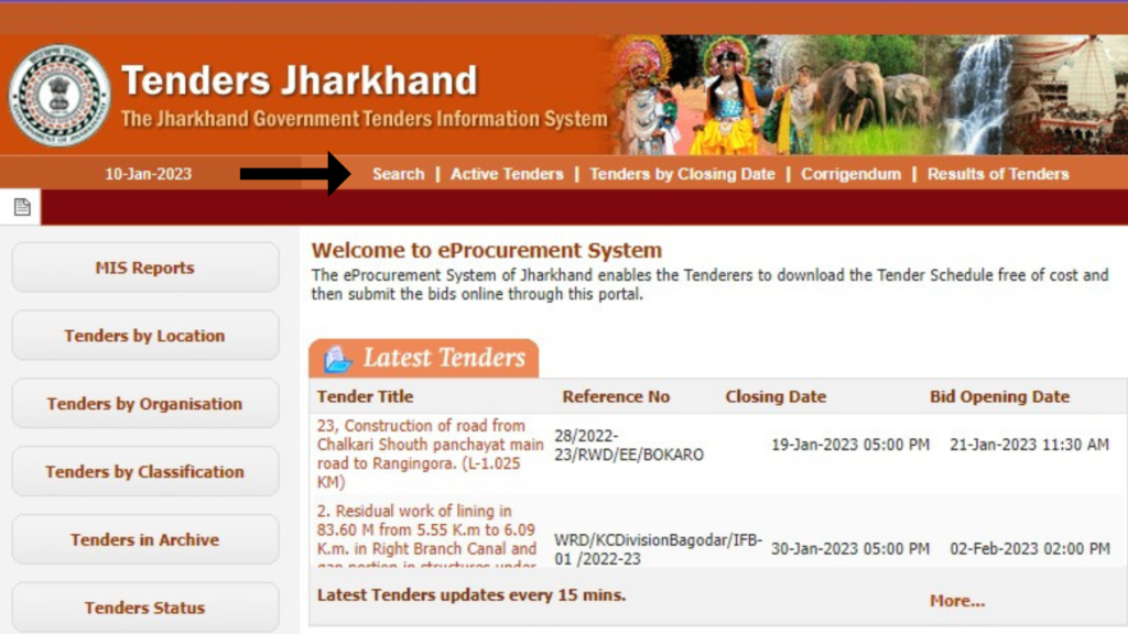 Now the Procurement Portal of Jharkhand is opened. Click on the search option given at the top of the site.