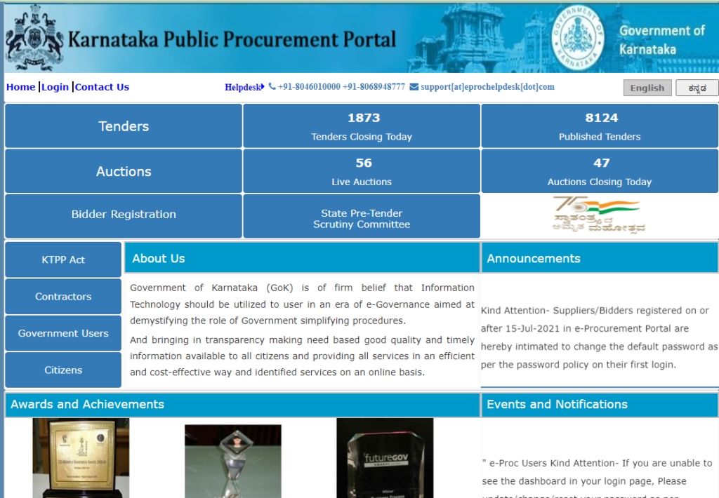 - Now the Procurement Portal of Karnataka is opened.