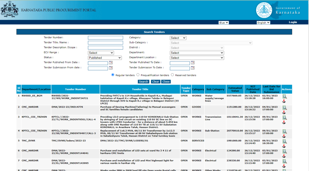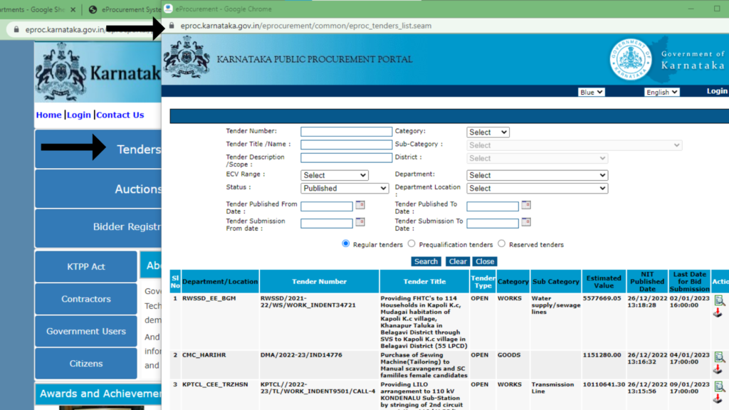 - Hello People! Here is the way to search Karnataka tenders