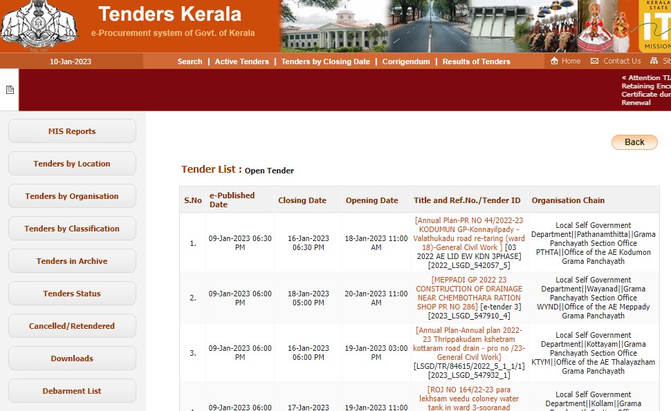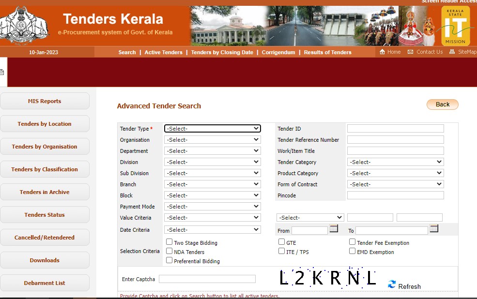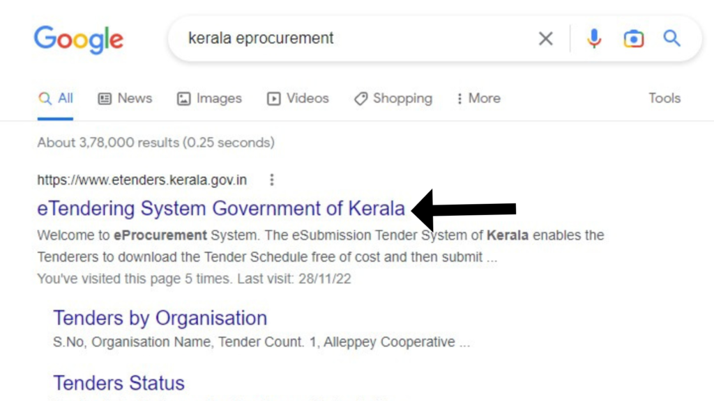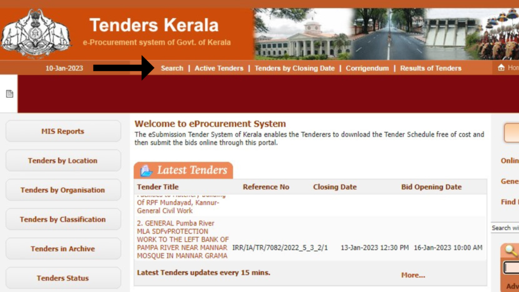 Now the Procurement Portal of kerala is opened. Click on the search option given at the top of the site.