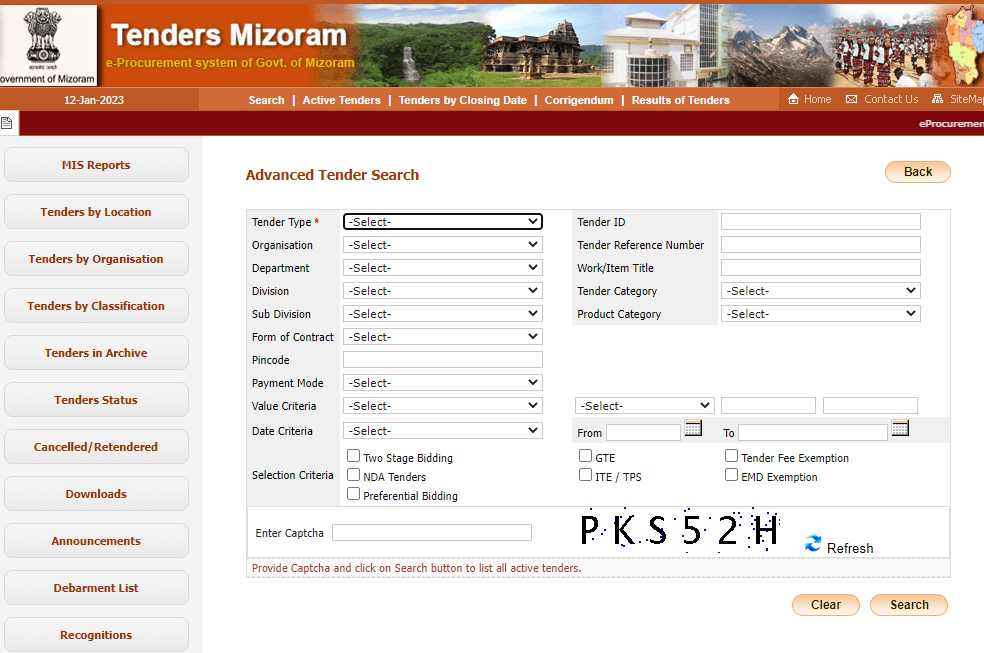 Now the Procurement Portal of Mizoram is opened. Click on the search option given at the top of the site.