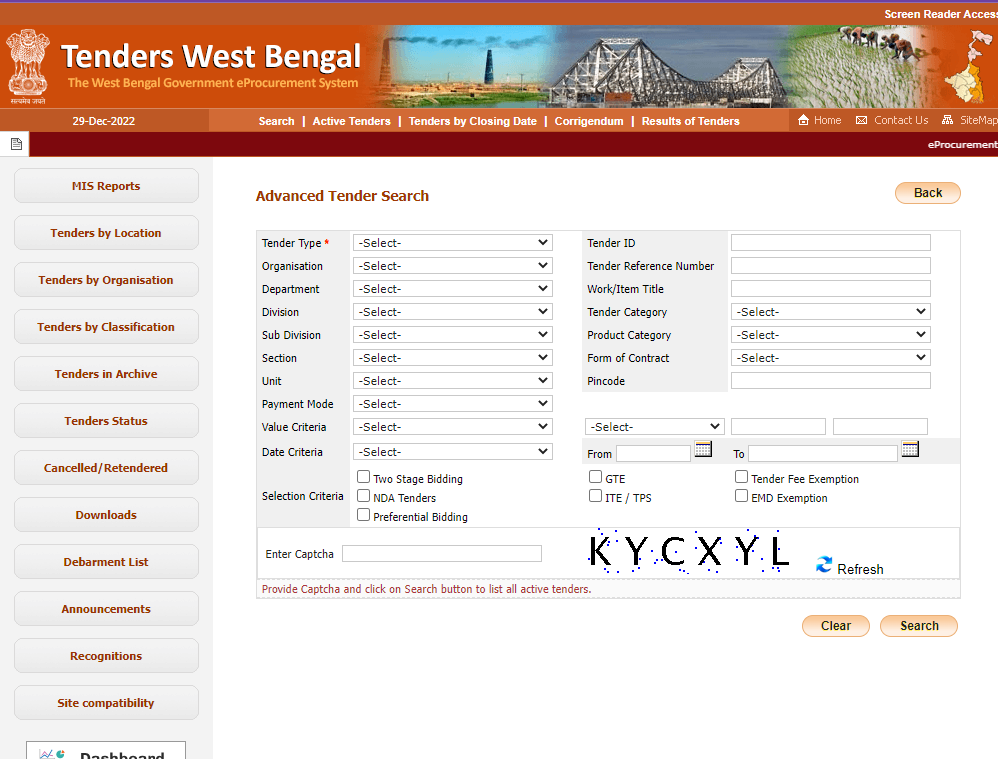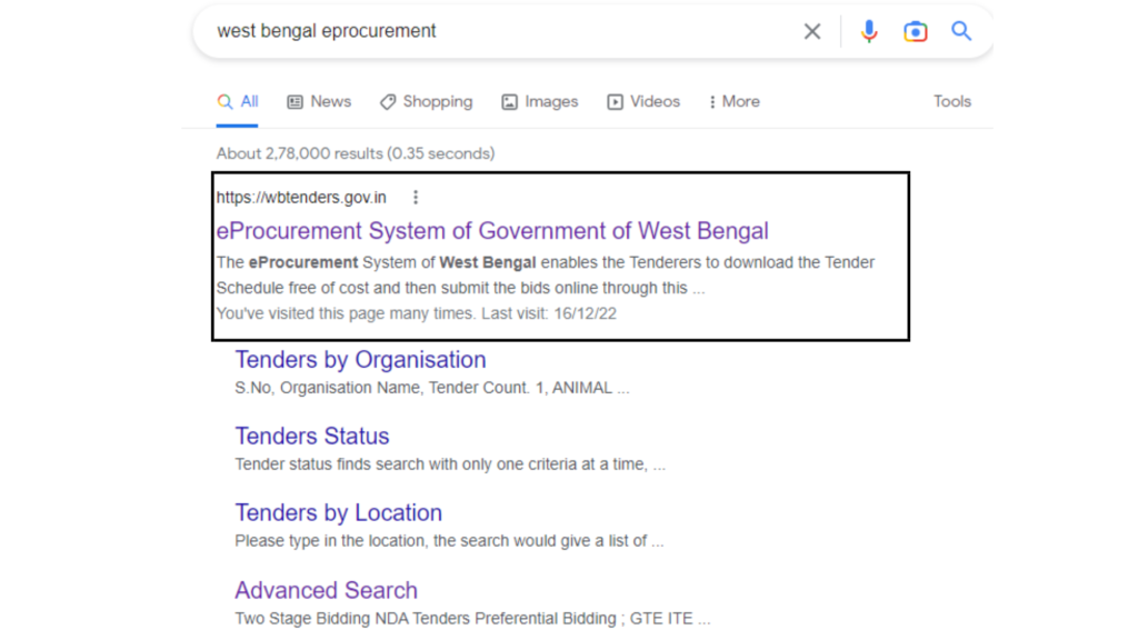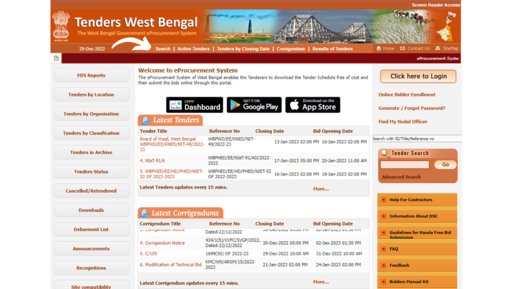 Now the Procurement Portal of West Bengal is opened. Click on the search option given at the top of the site.